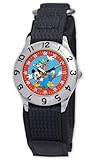 Disney Time Teller Youth Watch by Ewatchfactory® lets your little one keep track of time with their favorite Disney Character. The watch features a polished metal watch case with numbered hour markings and labeled 'hour' and 'minute' hands.It is outfitted with an easy-to-use nylon 'hook & loop' strap. A precision Japanese watch movement ensures accurate time keeping. Suitable for wrist between 4.75 and 7 inches.