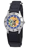 With its clear markings and labeled watch hands, the Disney Kids' Toy Story Time Teacher Black Velcro Watch #D014S500 makes it easy for your "Toy Story" fan to tell time. Your child's favorite "Toy Story" characters sit front and center on the dial. Several design elements make it as easy as possible for your child to tell the time: the polished metal bezel shows the hours in big, bold Arabic numerals; minutes are marked separately in white on a blue ring encircling the dial; and the hands are clearly marked "hour" and "minute." Kids will love the watch's sporty, almost grown-up look, which features metal accents and a black nylon strap that easily fastens with a Velcro closure. This watch is water resistant to 99 feet and is powered by analog quartz movement.