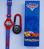 CARS PIXAR digital childrens watch set. MCQUEEN CARS digital watch comes with a compass.Nice size for small children.I inch watch case diameter. Battery operatesd.One-year warranty is included.The band length is about 7-3/4"