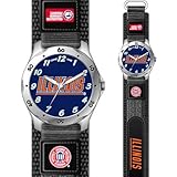 The officially licensed Boys Future Star watch from Gametime(r) is made with a stainless steel case back and thick adjustable VELCRO(r) brand strap for a comfortable fit. This water and shock resistant watch has a high quality Quartz(r) movement for accurate time keeping and easy-to read hands and numbers that glow in the dark. The watch is decorated in the team colors and designed with the team logo on the face.